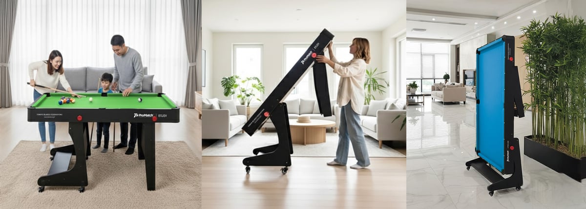 ProMatch olarak, bilardoyu herkes için daha erişilebilir kılmak amacıyla geliştirdiğimiz katlanabilir, taşınabilir ve yer kaplamayan bilardo masamız ile tanışın. Evde, ofiste ya da sosyal alanlarda kullanabileceğiniz bu masa; şık tasarımı, kullanıcı dostu yapısı ve teknik donanımıyla öne çıkıyor.